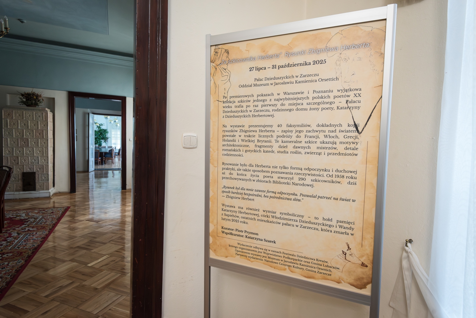W dniach od 27 lipca do 31 października 2025 roku w Pałacu Dzieduszyckich w Zarzeczu miała miejsce wystawa „Ze szkicownika Herberta”, prezentująca rysunki poety, myśliciela i jednego z najwybitniejszych twórców polskiej kultury XX wieku.